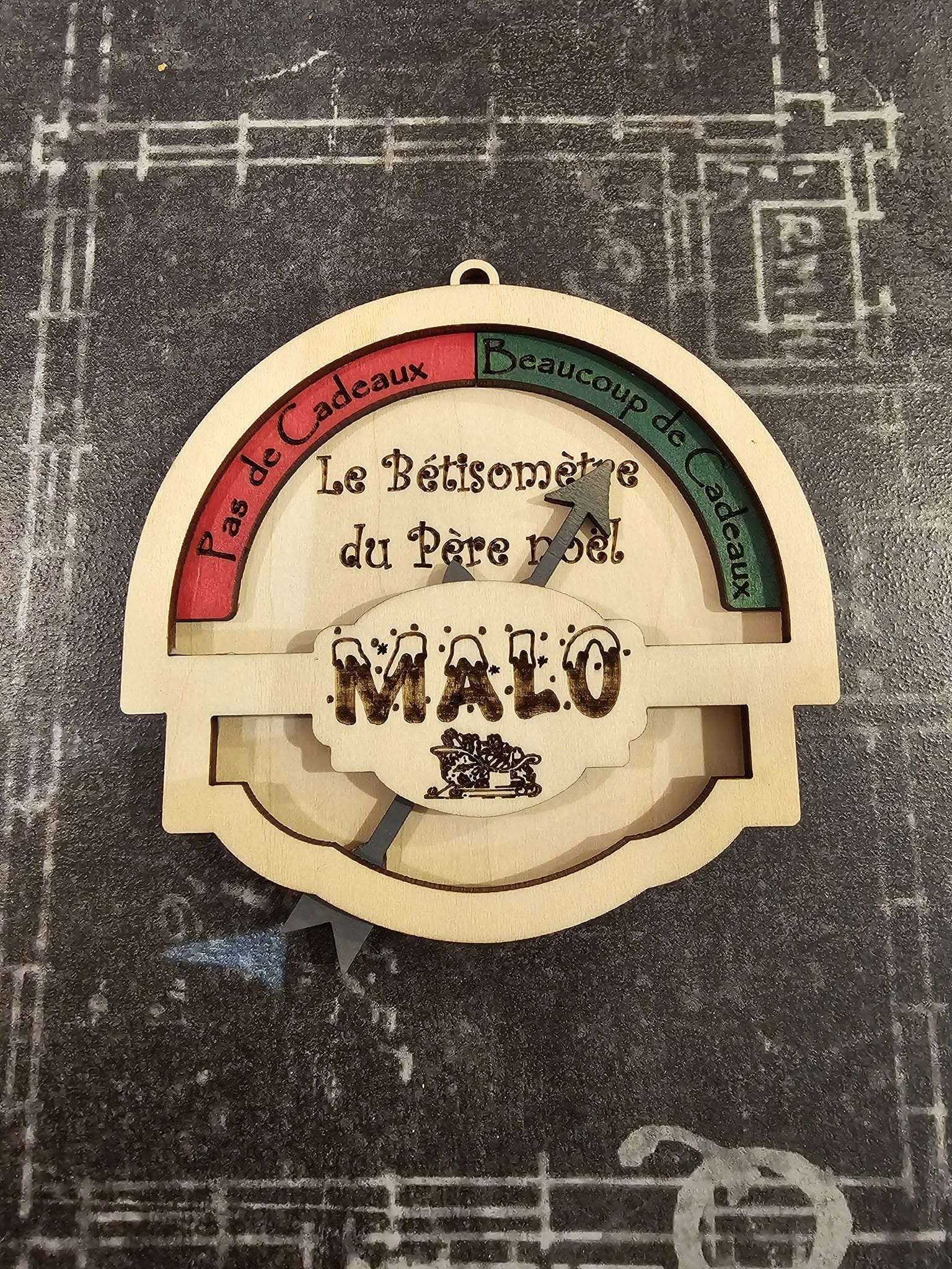 Gravé et découpé au laser dans notre atelier, il permet de voir si votre enfant se trouve du côté “Beaucoup de cadeaux” 🎁 … ou s’il risque “Pas de cadeaux” 😅 selon ses bêtises du moment !