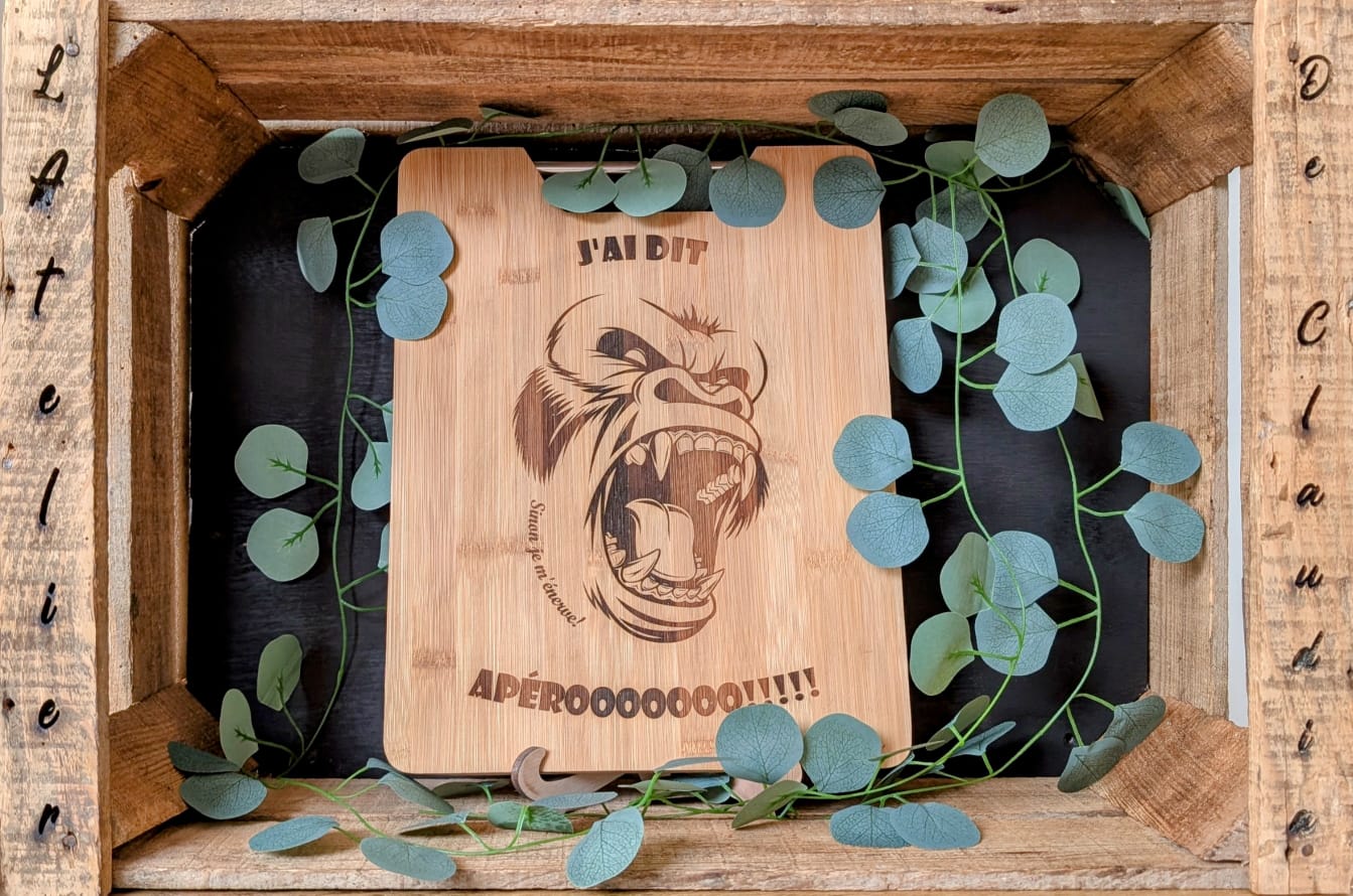 Que vous soyez passionné de cuisine, amateur de belles pièces en bois ou en quête d'un cadeau unique, nos planches à découper gravées apportent une touche de chaleur et d'authenticité à chaque repas.