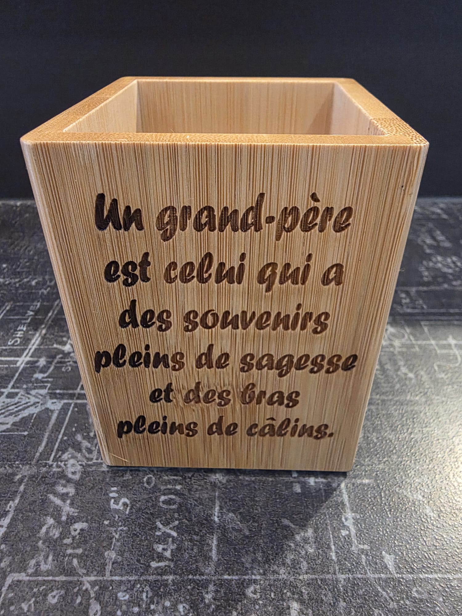 Transformez un simple accessoire de bureau en un objet qui a du caractère. Commandez votre pot à crayons en bambou personnalisé dès aujourd’hui.